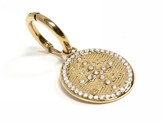 Σκουλαρίκια Ατσάλι 316L, κρίκος με σταυρό και στρας σε χρώμα Χρυσαφί