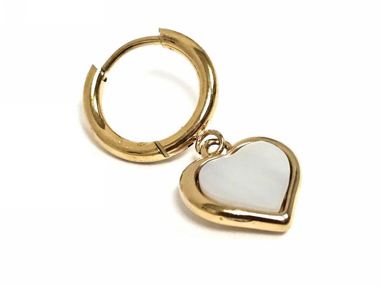 Σκουλαρίκια Ατσάλι 316L, κρίκος με καρδιά και φίλντισι σε χρώμα Χρυσαφί