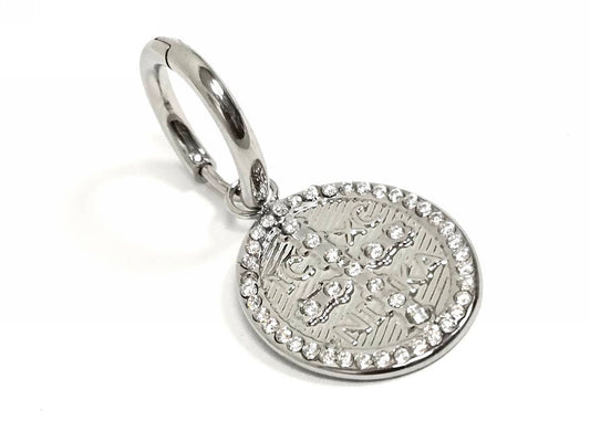 Σκουλαρίκια Ατσάλι 316L, κρίκος με σταυρό και στρας σε χρώμα Ασημί