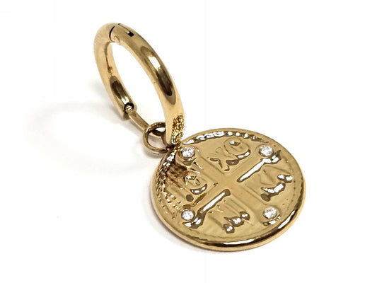Σκουλαρίκια Ατσάλι 316L, κρίκος με σταυρό σε χρώμα Χρυσαφί