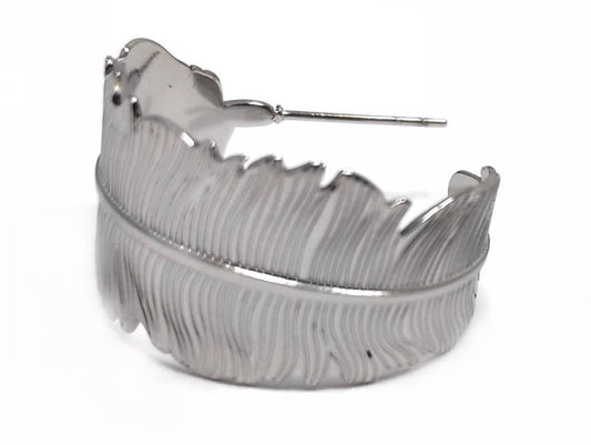 Ασημί Σκουλαρίκια με Σχέδιο Φτερού και Ανάγλυφες Λεπτομέρειες | 2212-374A