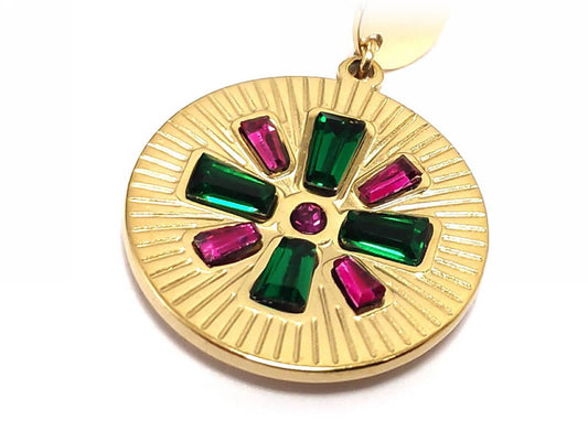 Σκουλαρίκια Στρογγυλά Χρυσά με Πράσινες & Ροζ Πέτρες σε Σταυρωτό Μοτίβο | 2212-376X