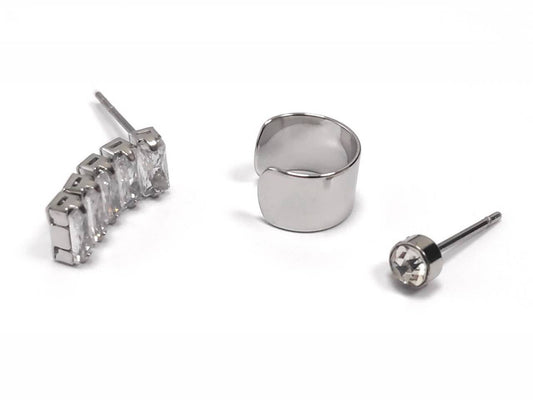 Σετ Γυναικείων Σκουλαρικιών με Ασημένιο Κλιπ, Διαμαντένια Καρφίτσα & Κρίκο με Διαφανείς Λίθους | 2222-001A