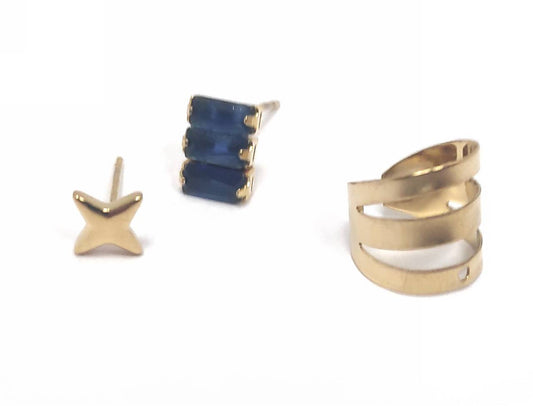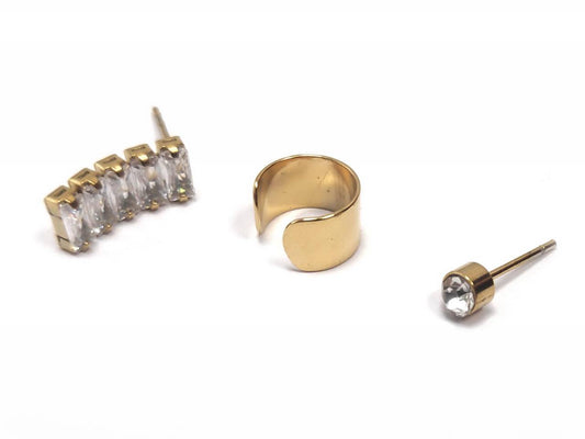 Χρυσό Σκουλαρίκι Κλιπ με Τριπλό Δακτύλιο από Ατσάλι | 2222-002X