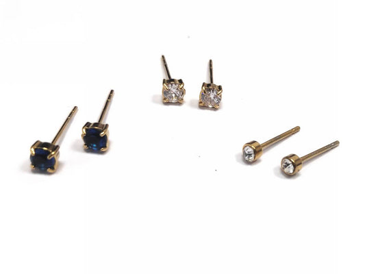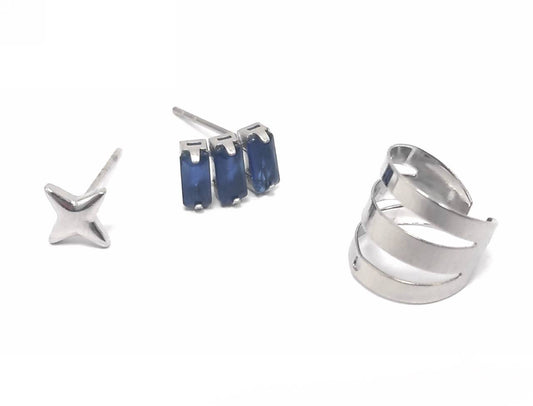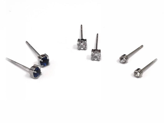 Σετ Σκουλαρίκια Καρφωτά με Διαφανείς και Μπλε Πέτρες από Ατσάλι | 2222-005A