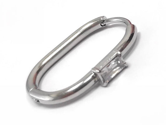 Γυναικεία Σκουλαρίκια Λευκόχρυσα Οβάλ με Ορθογώνιο Διαφανές Κρύσταλλο | 2222-006A