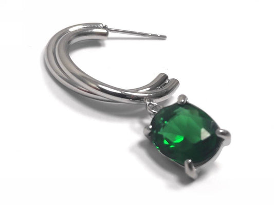 Γυναικεία Σκουλαρίκια με Ασημένιο Καμπυλωτό Σχέδιο και Πράσινο Οβάλ Πετράδι | 2222-007A