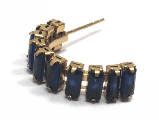 Χρυσά Ημικύκλια Σκουλαρίκια με Μπλε Ορθογώνιες Πολύτιμες Πέτρες | 2222-010X