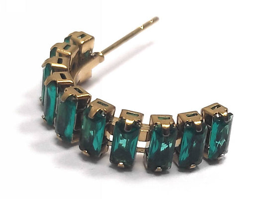 Χρυσαφένια Σκουλαρίκια με Πράσινες Ορθογώνιες Πέτρες | 2222-011X