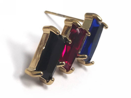 Γυναικεία Σκουλαρίκια με Γεωμετρικό Σχέδιο και Πολύτιμους Λίθους σε Μπλε, Κόκκινο και Μαύρο | 2222-041X