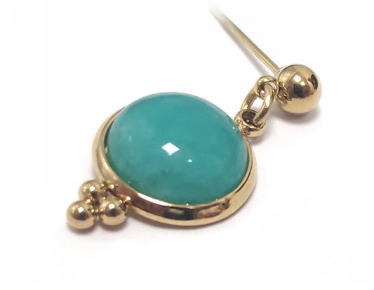 Χρυσά Σκουλαρίκια με Στρογγυλή Γαλάζια Πέτρα και Διακοσμητικές Μπίλιες | 2312-104X
