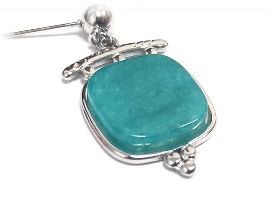 Ασημί Σκουλαρίκια με Τετράγωνο Τιρκουάζ Λίθο | 2312-106A