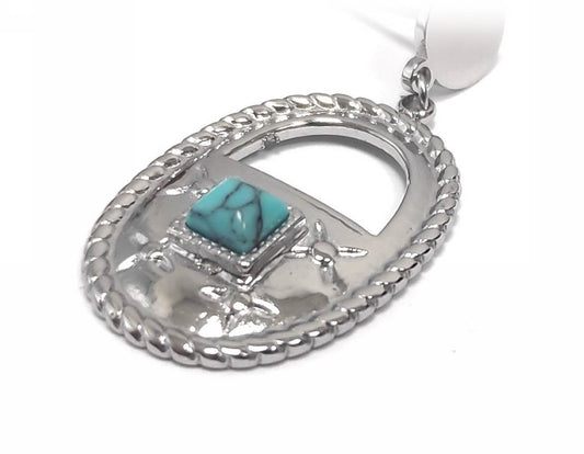 Γυναικεία Σκουλαρίκια Οβάλ με Ανάγλυφες Λεπτομέρειες και Τιρκουάζ Πέτρα | 2312-109A