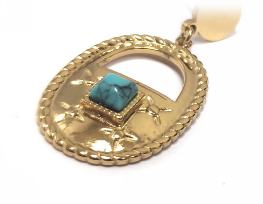 Γυναικεία Σκουλαρίκια Οβάλ από Χρυσό με Ανάγλυφη Διακόσμηση και Τιρκουάζ Πέτρα | 2312-109X