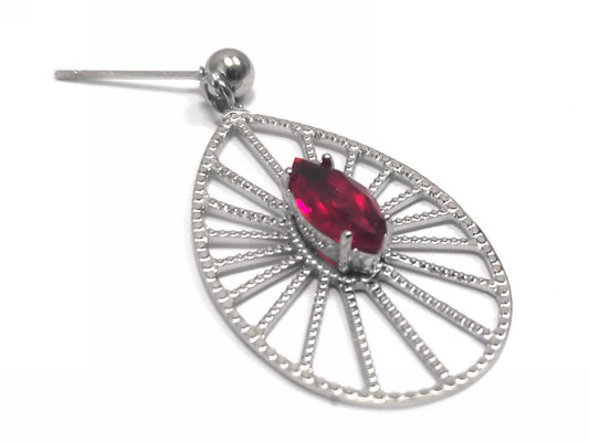 Γυναικεία Σκουλαρίκια σε Ασημένιο Χρώμα με Κόκκινο Λίθο Μάρκιζα και Σχέδιο Σταγόνας | 2222-008A