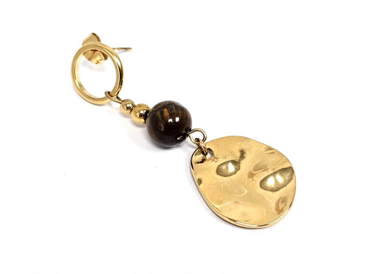 Σκουλαρίκια Πέτρα Ατσάλι 316L, με μάτι τίγρης σε χρώμα Χρυσαφί