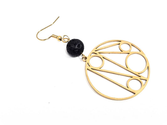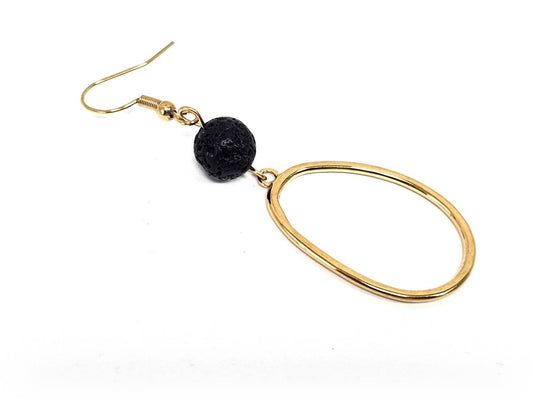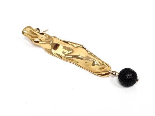 Σκουλαρίκια Πέτρα Ατσάλι 316L, με λάβα σε χρώμα Χρυσαφί