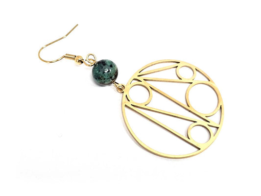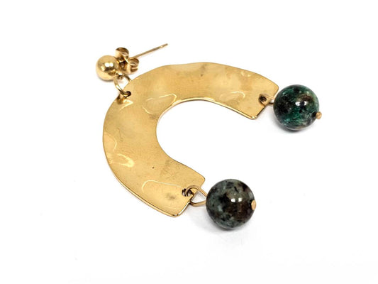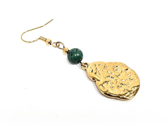 Σκουλαρίκια Πέτρα Ατσάλι 316L, με μαλαχίτης σε χρώμα Χρυσαφί