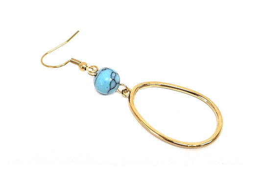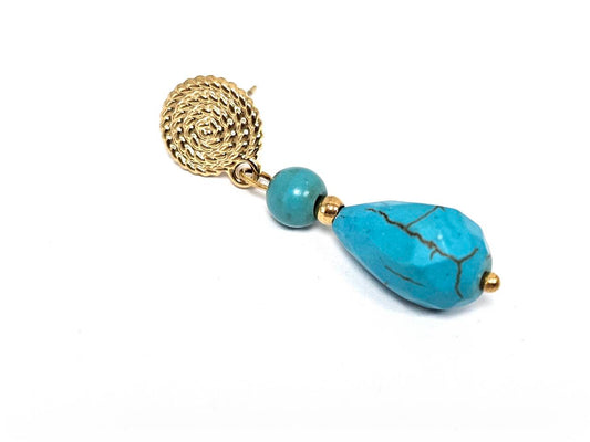 Σκουλαρίκια Πέτρα Ατσάλι 316L, σπείρα με τυρκουάζ σε χρώμα Χρυσαφί