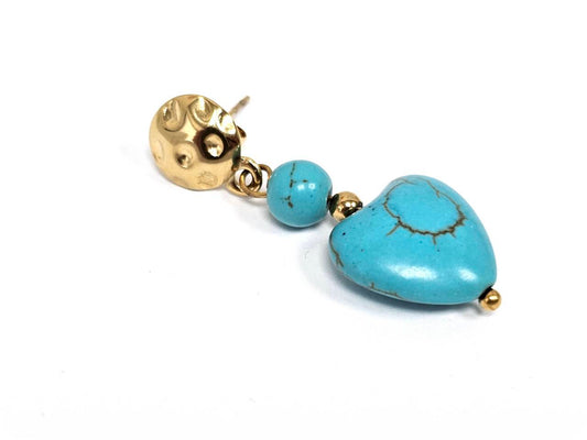 Σκουλαρίκια Πέτρα Ατσάλι 316L, καρδιά με τυρκουάζ σε χρώμα Χρυσαφί