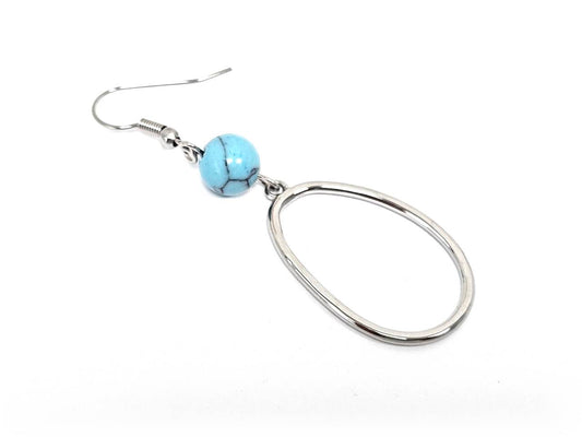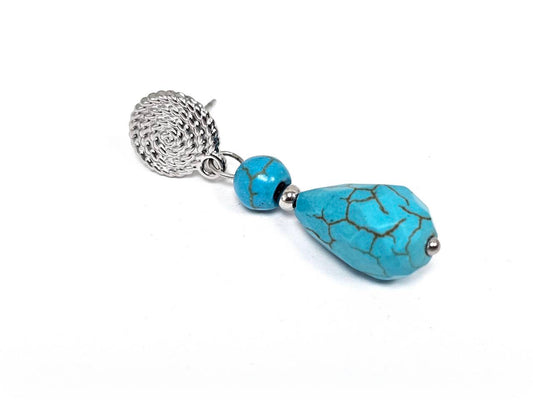 Σκουλαρίκια Πέτρα Ατσάλι 316L, με τυρκουάζ σε χρώμα Ασημί