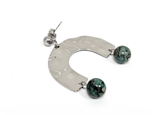 Σκουλαρίκια Πέτρα Ατσάλι 316L, με μαλαχίτης σε χρώμα Ασημί