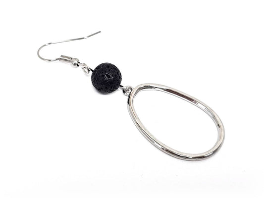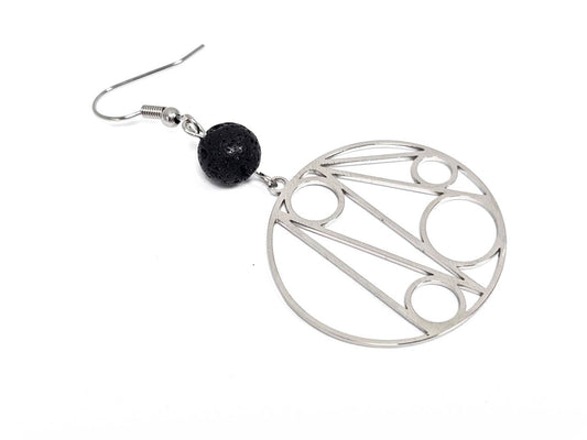 Σκουλαρίκια Πέτρα Ατσάλι 316L, με λάβα σε χρώμα Ασημί