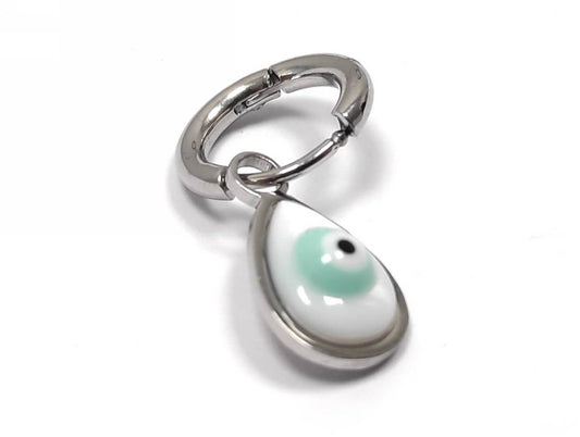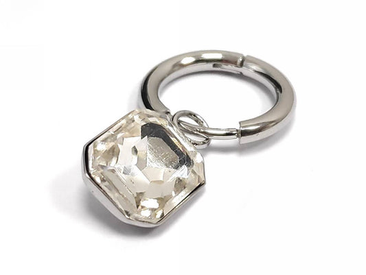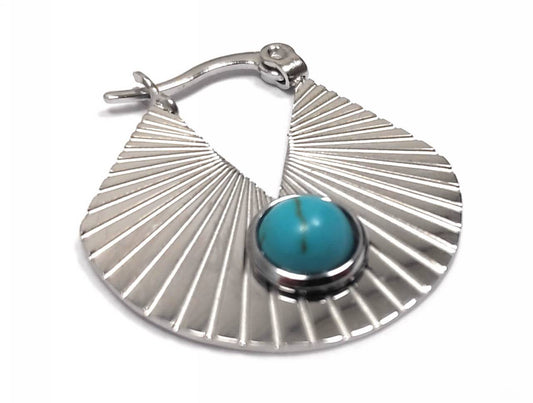 Σκουλαρίκια Κρίκοι από Ασήμι με Κρεμαστό Λευκό Πολύεδρο Λίθο | 2212-373A