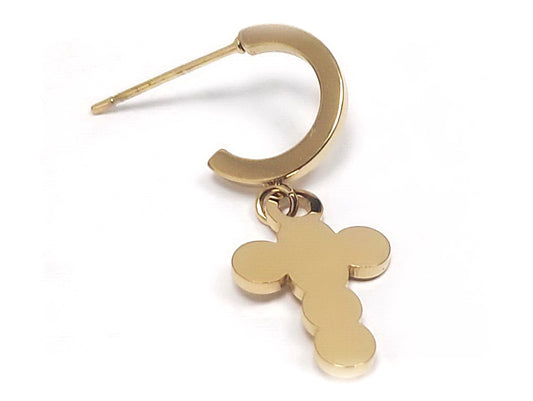 Ασημί Σκουλαρίκια με Σταυρό και Μεταλλική Αψίδα | 2112-124A