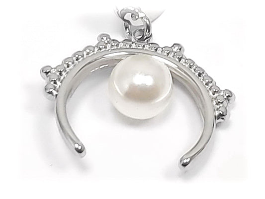 Σκουλαρίκια Κρίκοι με Ημισέληνο και Λευκή Πέρλα από Ατσάλι | 2112-127A