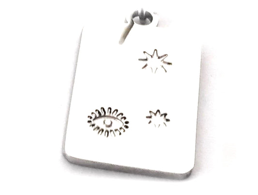 Γυναικεία Σκουλαρίκια με Ορθογώνιο Σχήμα και Σχέδια Αστεριών & Ματιού από Ατσάλι | 2112-134A