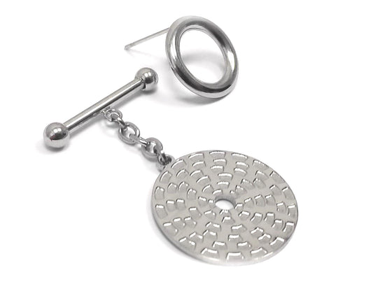 Σκουλαρίκια με Σπειροειδή Κύκλο και Κυλινδρικά Στοιχεία από Ατσάλι | 2112-130A