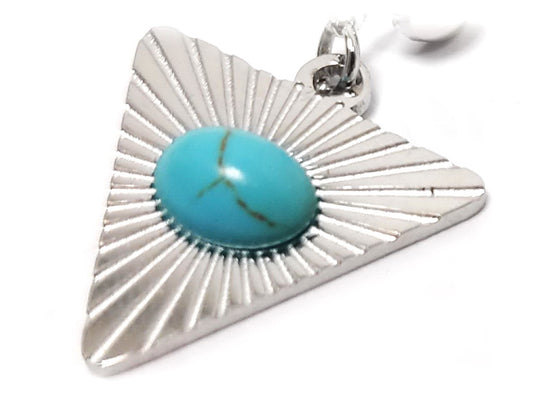 Γυναικεία Σκουλαρίκια Τρίγωνα από Ασημί Μέταλλο με Ανάγλυφο Σχέδιο και Τιρκουάζ Πέτρα | 2112-147A