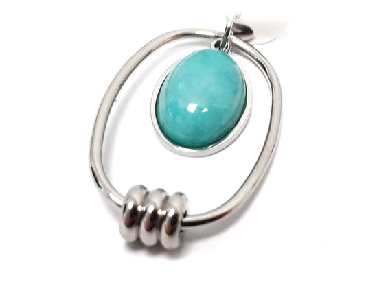 Γυναικεία Σκουλαρίκια από Ατσάλι με Τυρκουάζ Οβάλ Πέτρωμα και Διακοσμητικούς Δακτυλίους | 2112-151A