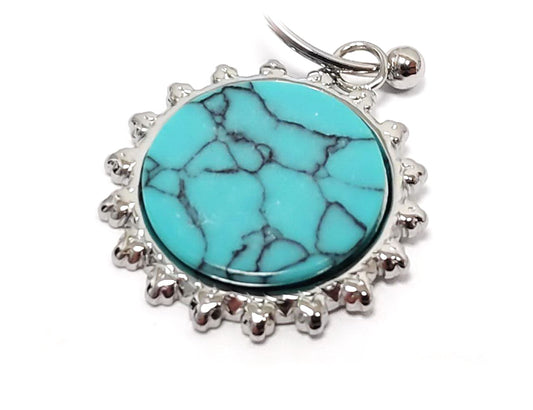Σκουλαρίκια Κρίκοι με Τυρκουάζ Πέτρα και Ασημί Διακοσμητικές Λεπτομέρειες | 2112-152A