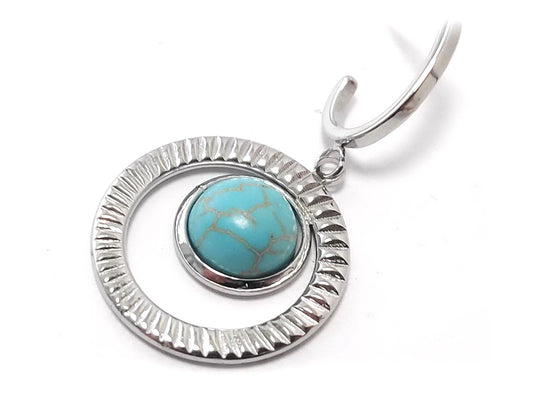 Γυναικεία Σκουλαρίκια με Κυκλικό Ασημένιο Δαχτύλιο και Τιρκουάζ Πέτρα | 2112-148A