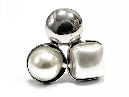 Σύγχρονα Ασημένια Σκουλαρίκια με Μαργαριτάρι και Ψευδοκύβο | 2422-031A