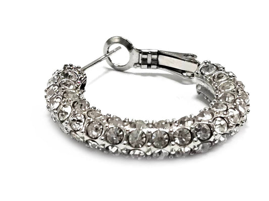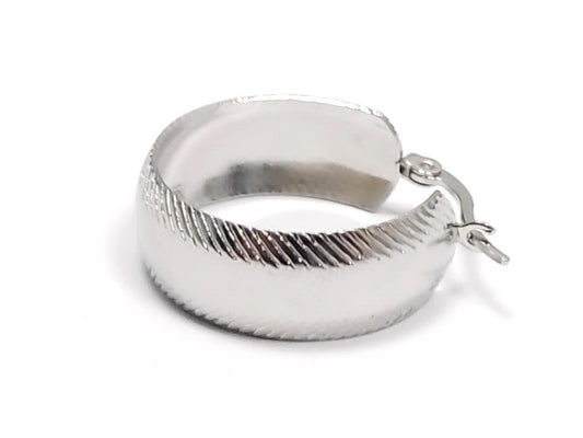 Σκουλαρίκια Κρίκοι από Ατσάλι σε Ασημένια Απόχρωση με Ανάγλυφα Διαγώνια Σχέδια | 2012-123A