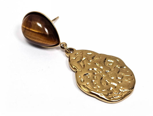 Γυναικεία Σκουλαρίκια με Καφέ Ημιπολύτιμο Λίθο και Χρυσό Μεταλλικό Σχέδιο | 2512-312X