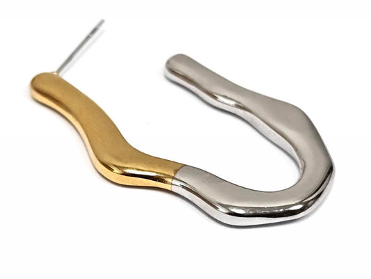 Σκουλαρίκια Δίχρωμα Χρυσά & Ασημί με Κυματοειδές Σχέδιο | 2512-333X
