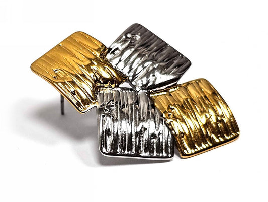 Γυναικεία Σκουλαρίκια με Γεωμετρικό Σχέδιο και Διχρωμία Χρυσού-Ασημί | 2512-334X