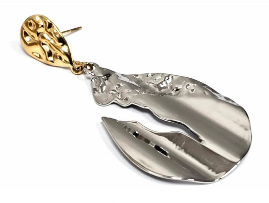 Γυναικεία Σκουλαρίκια Χρυσά & Ασημί με Ανάγλυφη Ασύμμετρη Σχεδίαση | 2512-336A