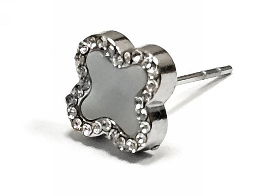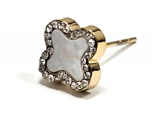 Γυναικεία Σκουλαρίκια Τετράφυλλο Τριφύλλι με Λαμπερές Πέτρες σε Λευκόχρυσο ή Ασήμι | 2422-022A