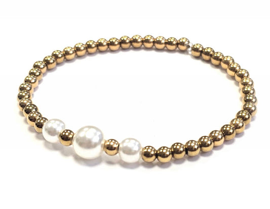 Βραχιόλι Ατσάλι 316L, λάστιχο με πέρλα σε χρώμα Χρυσαφί