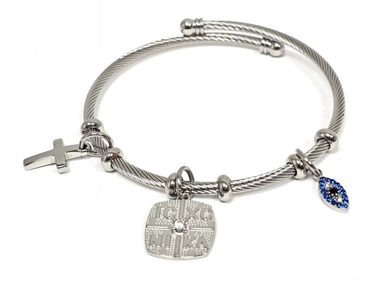 Βραχιόλι Ατσάλι 316L, με σταυρό , μαρτυρικό , μάτι και στρας σε χρώμα Ασημί