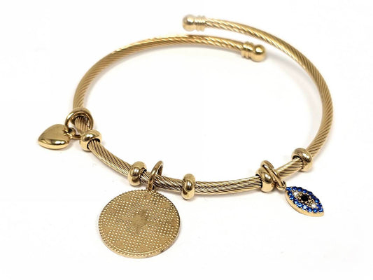 Βραχιόλι Ατσάλι 316L, με καρδιά , μάτι και στρας σε χρώμα Χρυσαφί