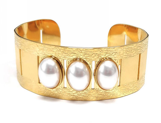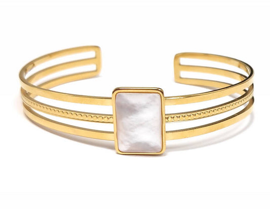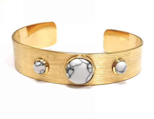 Κομψό Χρυσό Μανσέτα Βραχιόλι με Ωοειδή Πέτρα και Διακριτική Διακόσμηση | 2412-241X