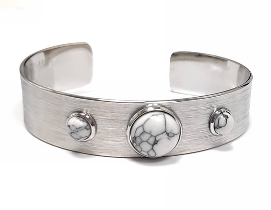 Κομψό Γυναικείο Βραχιόλι με Κυκλικά Μαρμαροειδή Στοιχεία και Σατινέ Υφή | 2412-245A