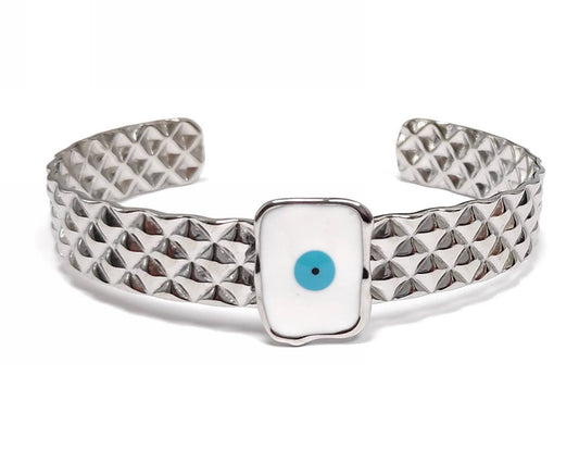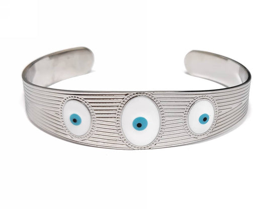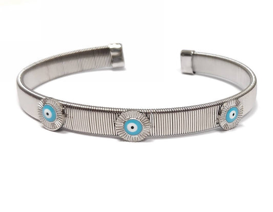 Γυναικείο Ασημένιο Βραχιόλι Μπρασελέ με Μοτίβο Ματιού για Προστασία | 2412-252A