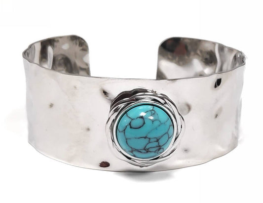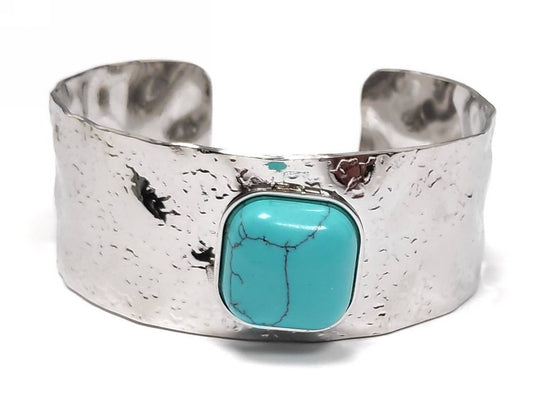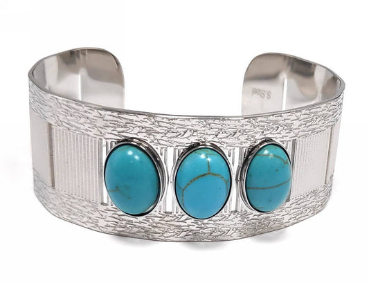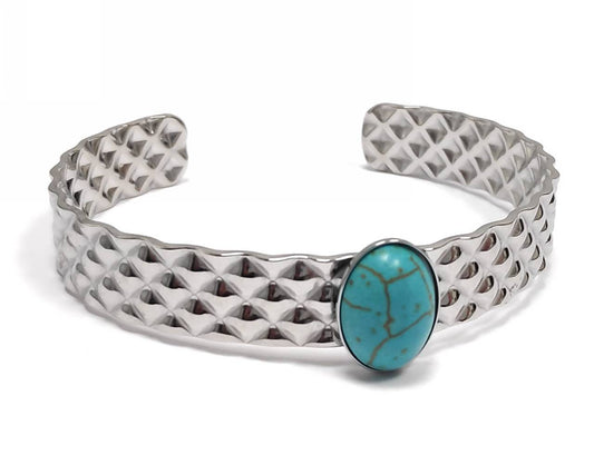 Γυναικείο Ασημένιο Βραχιόλι με Κεντρική Πέτρα Τουρκουάζ και Διακριτικές Υφές | 2412-263A